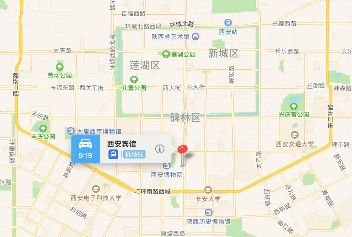 1、西安火車站:距離西安賓館車程約8公里,建議打車前往。