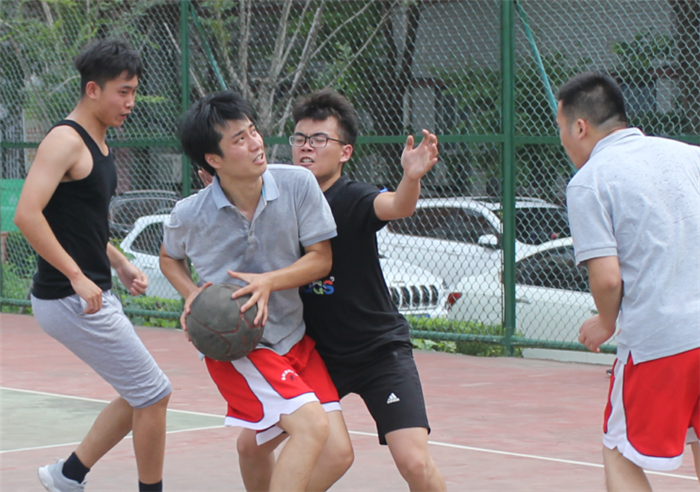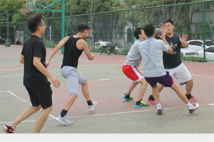 915日下午,碩博第二屆籃球友誼賽,在學(xué)?;@球場(chǎng)拉開(kāi)帷幕,比賽分為軟件部和生產(chǎn)部?jī)申?duì),每隊(duì)五人,每節(jié)十分鐘,共有四節(jié)。中場(chǎng)舉行部門投籃比賽,每部門三人,每人5球,投中一球得一分。
