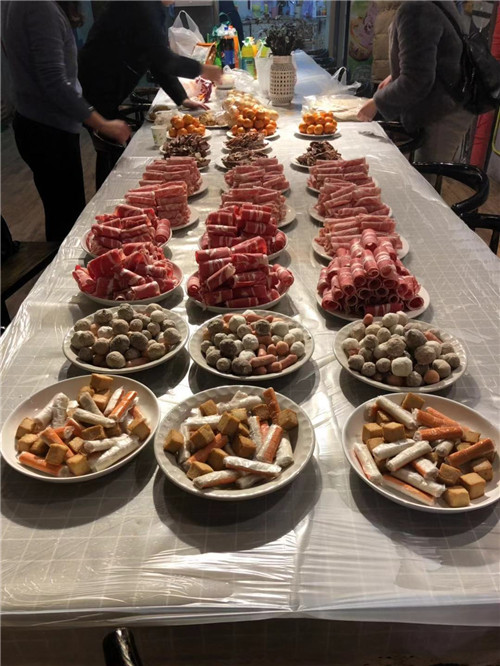 晚餐的形式主要是以火鍋為主,然后各部門(mén)現(xiàn)場(chǎng)做兩個(gè)菜,進(jìn)行廚藝比拼。所以女同事們紛紛挽起衣袖,洗刷餐具和蔬菜,并把肉、火鍋丸子、蔬菜、水果擺盤(pán)裝好,把大骨湯煮上。然后進(jìn)行廚藝比拼的同事也準(zhǔn)備了自己的食材?;舆€不少呢,有油燜大蝦、金湯肥牛、彩椒炒雞腿肉、清蒸桂魚(yú)、青椒雞蛋等,對(duì)了,還有烤紅薯。最后,評(píng)論哪道菜最好吃的時(shí)候,發(fā)生了很大的分歧,畢竟食材不一樣,菜也不一樣,但是每個(gè)人的愛(ài)好不同,有的喜歡吃雞肉,有的喜歡吃魚(yú),無(wú)法分出勝負(fù),但是光光的盤(pán)子告訴我們,都好吃!