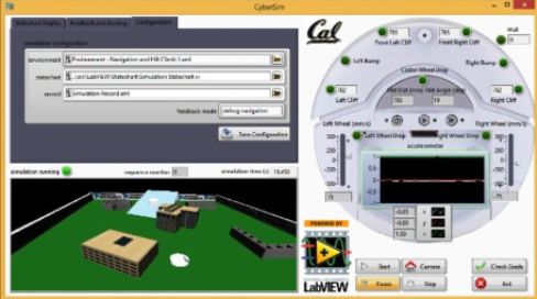 研究人員使用LabVIEW軟件開發(fā)了兩個組件:一個是部署在虛擬或真實硬件上的模塊化控制程序,學生們可以使用C或LabVIEW狀態(tài)圖模塊開發(fā)與平臺獨立的代碼;二是開發(fā)了獨立運行的簡易應用程序,提供直觀易懂的GUI來進行仿真、測試、提供自動反饋,并通過自動評分機來進行評分。