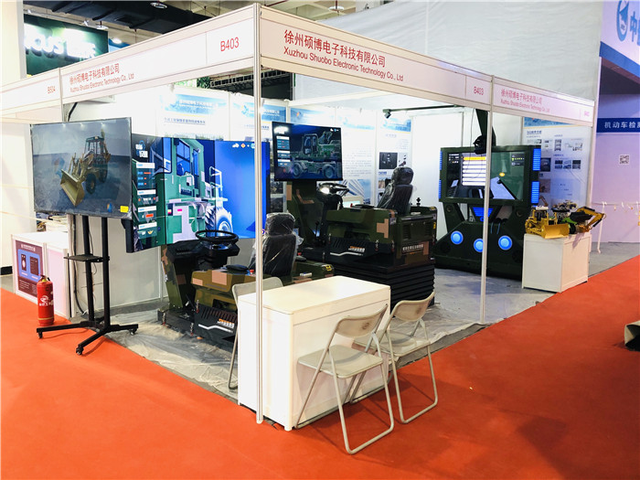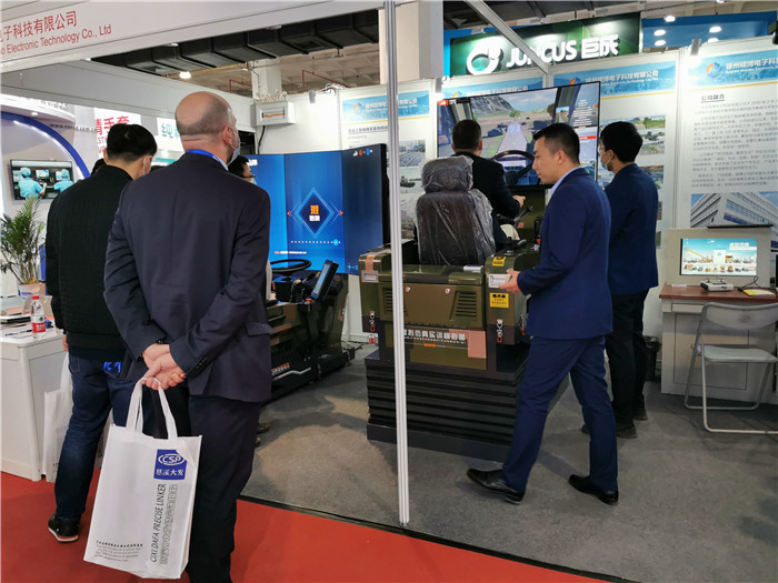 此次展會,我司的參展設備,是我司根據中國人民解放軍陸軍工程大學要求研制的工程機械裝備仿真模擬器,輪式裝載機仿真模擬器、高速輪式挖掘機仿真模擬器及飛機充氧車仿真模擬器,此次展出的設備,主要采用模組機的概念來設計,通過簡單的硬件模塊更換,自動識別軟件系統(tǒng),從而切換不同設備的模擬器,其中高挖模組機配備六自由度平臺,讓模擬器操作更加真實,更符合真機體感。