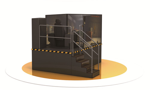 駕駛室系統(tǒng)采用真實(shí)的操作臺(tái),包括一套完整的操作臺(tái)(內(nèi)含各種操作手柄、開(kāi)關(guān)、功能按鈕、護(hù)欄、以及司機(jī)座椅等),其原來(lái)的玻璃窗口用視景系統(tǒng)的投影屏幕替代,通過(guò)“窗口”可以看到從高性能投影儀投放在屏幕上的視景景象和操作情況。音響系統(tǒng)可以產(chǎn)生實(shí)際作業(yè)中的各種聲音(如電動(dòng)機(jī)起、制動(dòng),大、小車(chē)運(yùn)行,貨物撞擊,車(chē)間環(huán)境聲音等等)以及各種現(xiàn)場(chǎng)聲響。